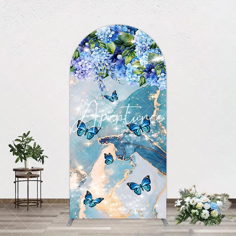 Aperturee Green Blue Marbled Floral Butterfly Arch Backdrop