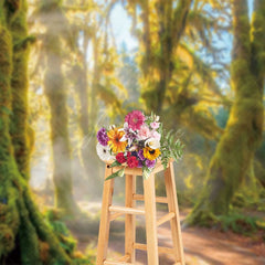 Aperturee Green Tree Forest Warm Sunshine Photography Backdrop