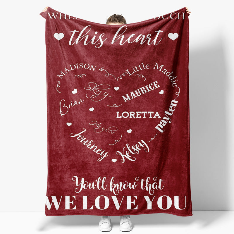 Aperturee Red Heart White Warm Text Custom Family Name Blanket
