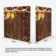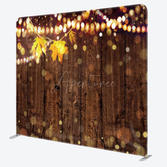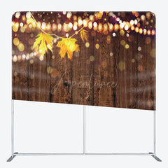 Aperturee Rustic Wood Wall Tension Fabric Backdrop with Autumn Leaves and Bokeh Lights, Fall Wedding or Thanksgiving Party