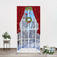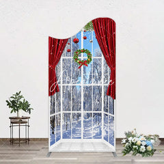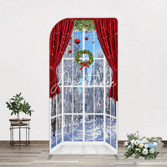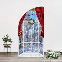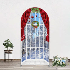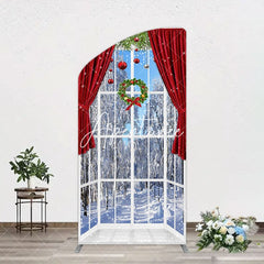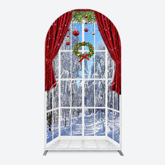 Aperturee Window Snowy Forest Scene Christmas Arch Backdrop