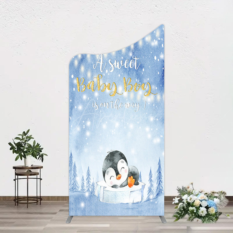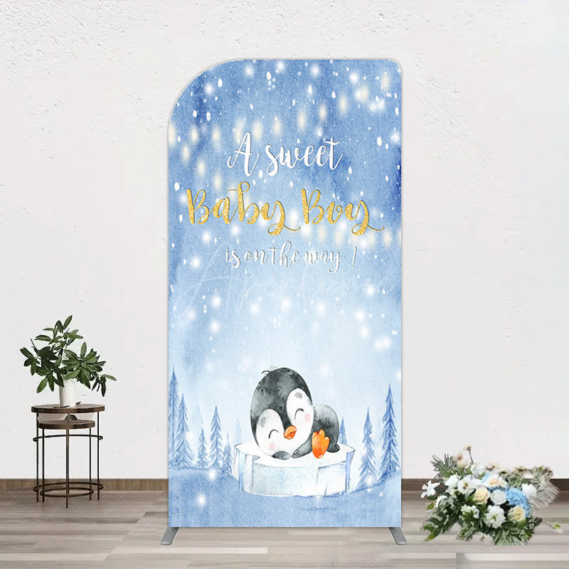 Aperturee Winter Snowy Blue Penguin Baby Shower Arch Backdrop
