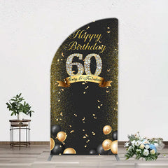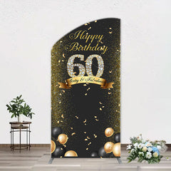 Black Gold Balloon Ribbon Arch 60th Birthday Backdrop
