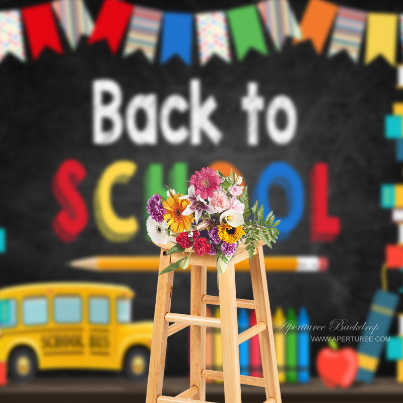 Books Pencil Bus Crayon Black Back To School Backdrop