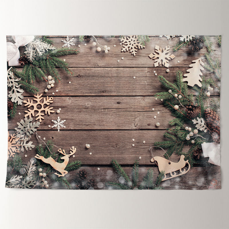 Gold Sled Snowflake Leaves Wood Christmas Backdrop