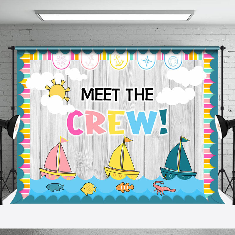 Grey Wooden Sailboat Meet The Crew Party Backdrop