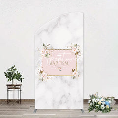 Marble White Pink Floral Cross Baptism Arch Backdrop