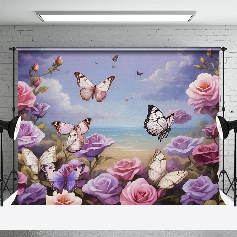 Oil Painting Colorful Rose Butterfly Spring Backdrop