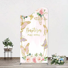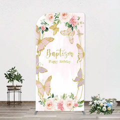 Pink Butterfly Baptism Happy Birthday Arch Backdrop