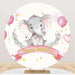 Pink Stripe Elephant Leaf Round Baby Shower Backdrop