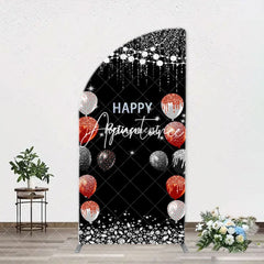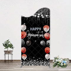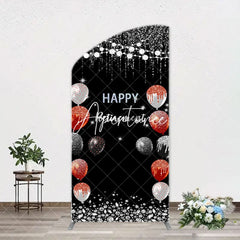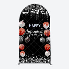 Silver Sparkle Balloon Black Arch Retirement Backdrop