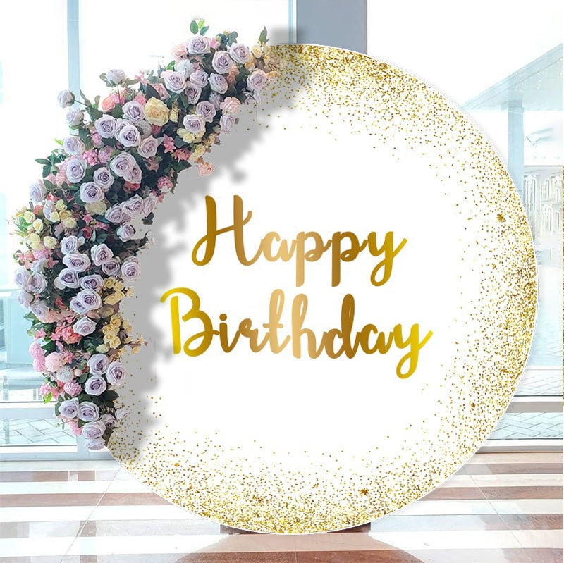 Simple Glitter Golden Round Happy Birthday Backdrop