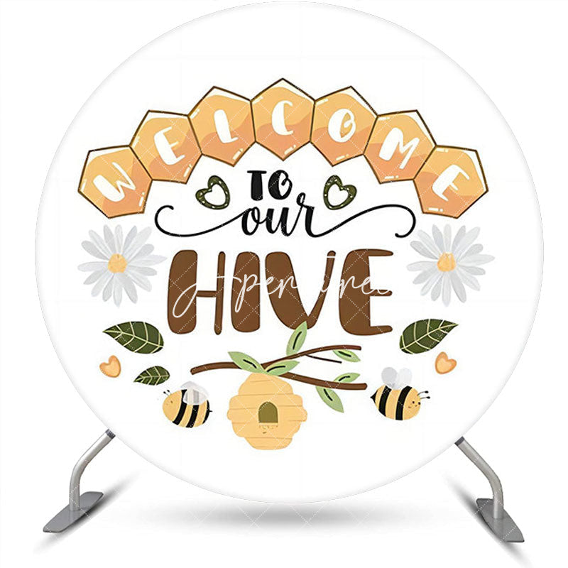 Welcome To Our Hive Floral Round Birthday Backdrop