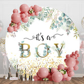 Aperturee Round Boho Glitter Plant Boy Baby Shower Backdrop