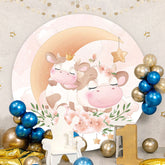 Pink Cows And Moon Round Baby Shower Backdrop