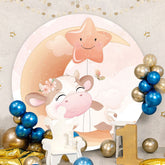 Pink Moon Star And Cow Round Baby Shower Backdrop