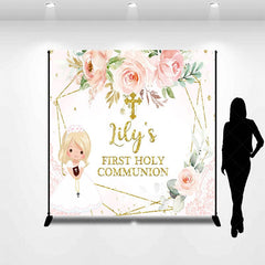 Aperturee Floral First Holy Communion Custom Baptism Backdrop