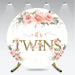 Aperturee Floral It's Twins Round Backdrop with Pink Roses, Gold Glitter Baby Shower Decoration for Twin Girls Party