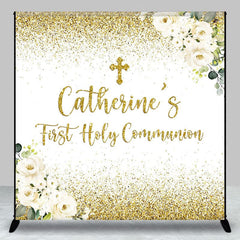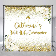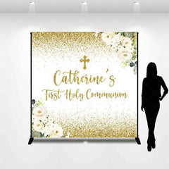 Aperturee Gold Glitter First Holy Communion Custom Name Backdrop