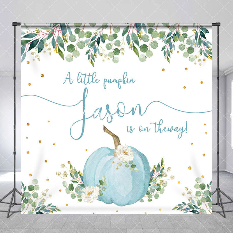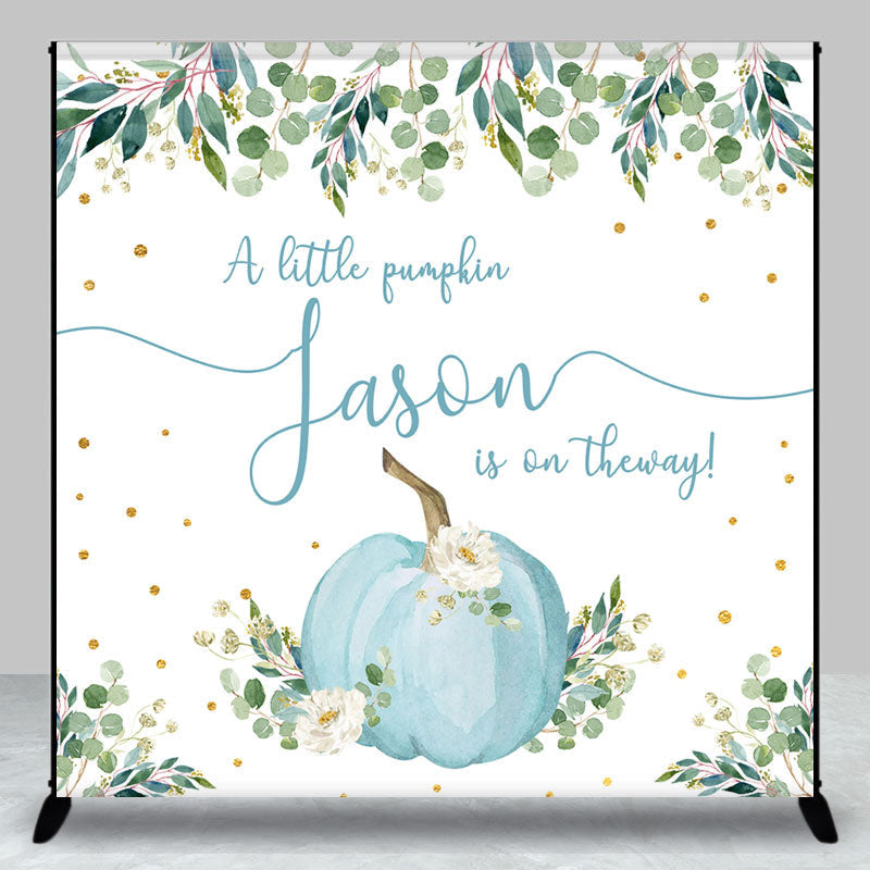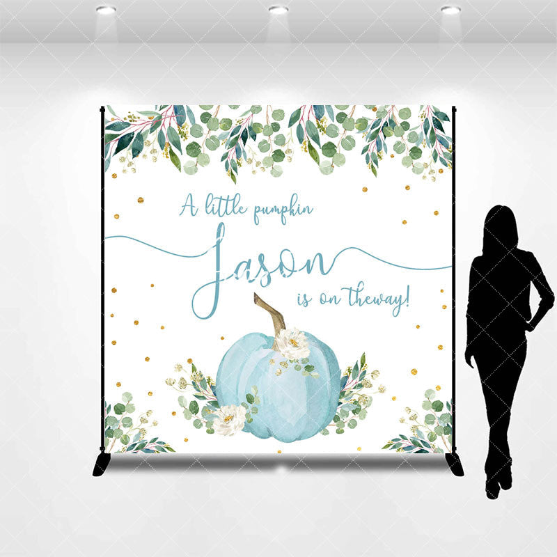 Aperturee Greenery Blue Pumpkin Custom Baby Shower Backdrop