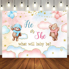 Aperturee He Or She Blue Pink Cloud Bear Gender Reveal Backdrop