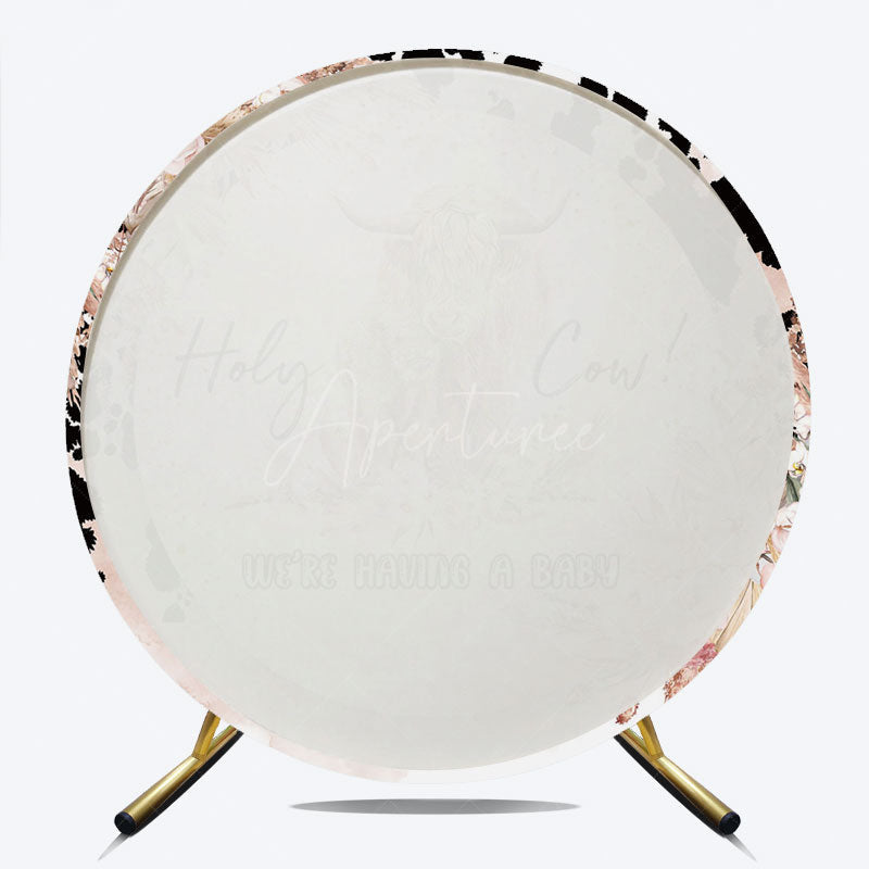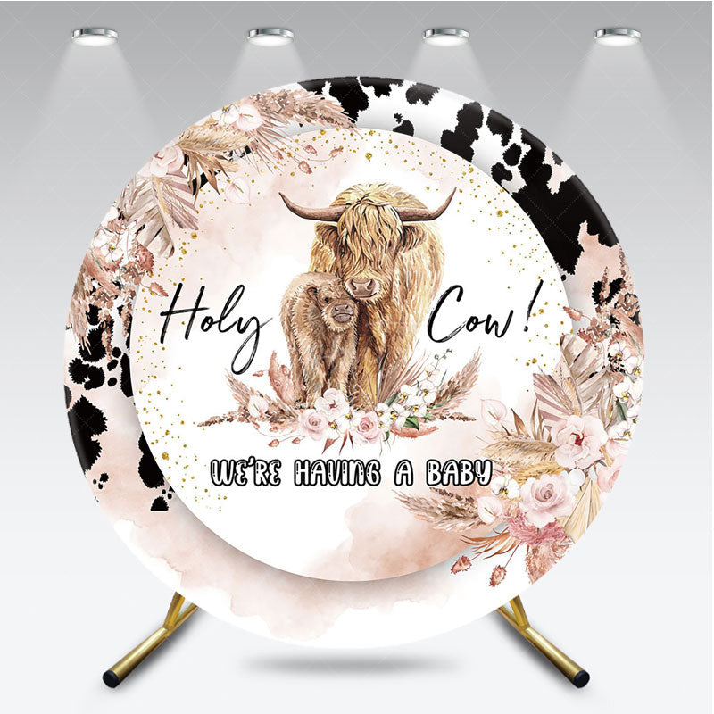 Aperturee Holy Cow We're Having a Baby Round Backdrop, Boho Highland Cow Theme, Pampas Grass Baby Shower Party Decor