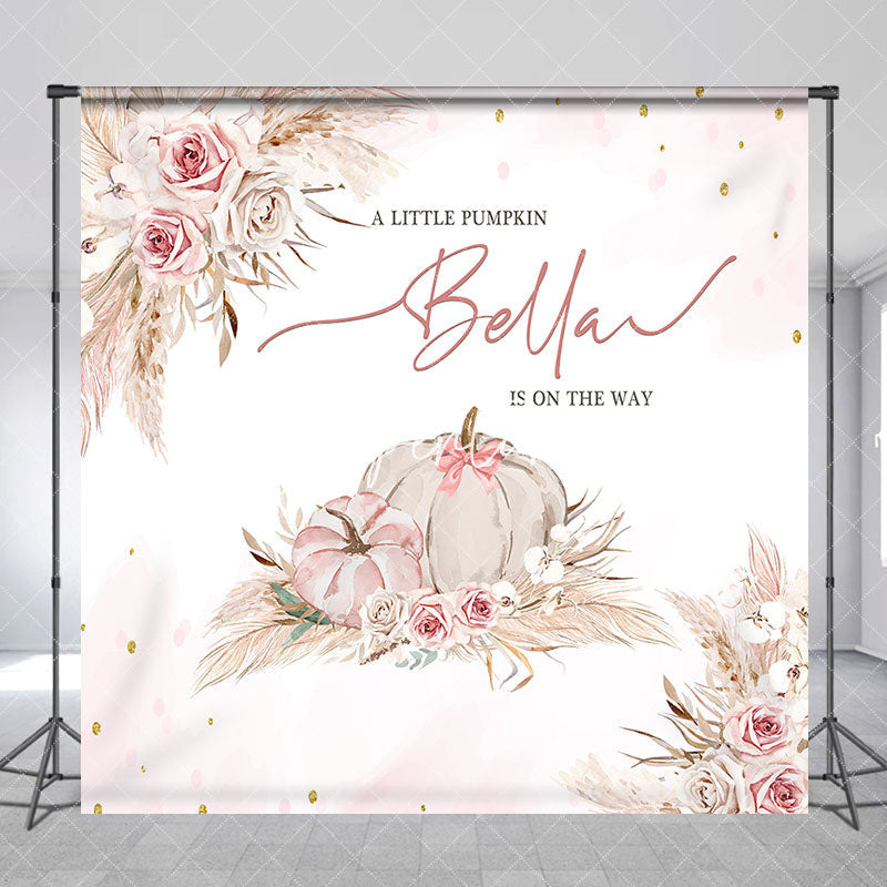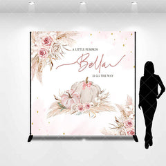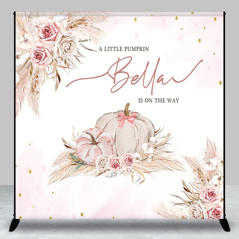 Aperturee Pink Floral Pumpkin Custom Name Baby Shower Backdrop