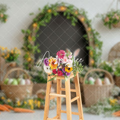 Aperturee Plant Floral Woven Basket Eggs Bunny Easter Backdrop