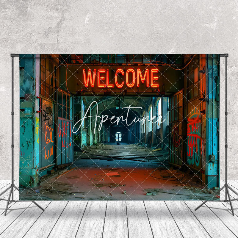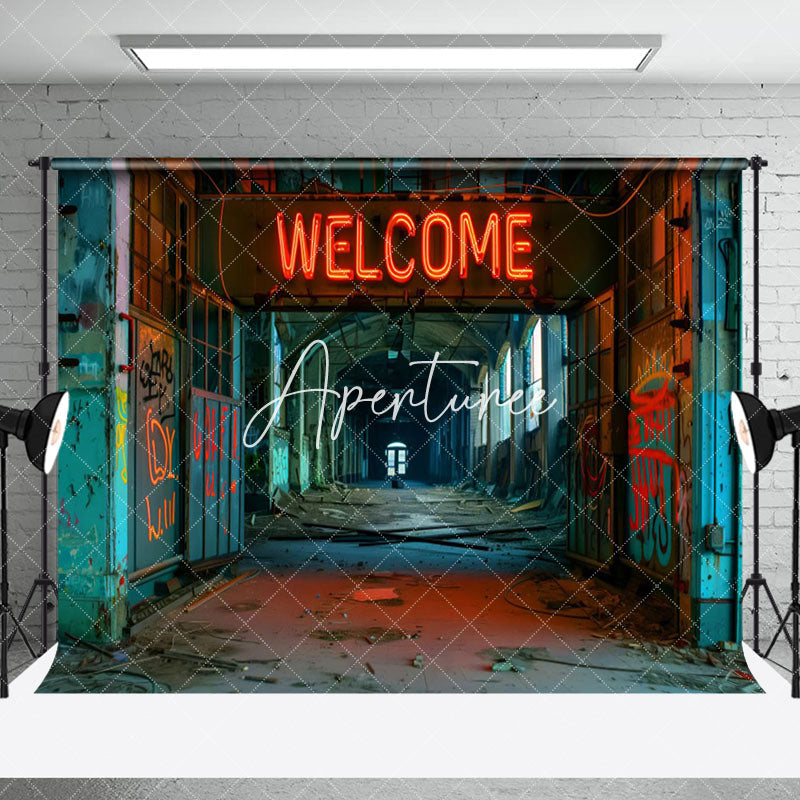 Aperturee Retro Neon Abandoned Building Architecture Backdrop