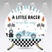 Aperturee Round Backdrop, Little Racer Blue Race Car Checkered Flag Baby Shower Circle Cover