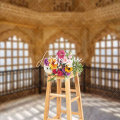 Aperturee Scenic Marble Pavilion With Arched Windows Backdrop