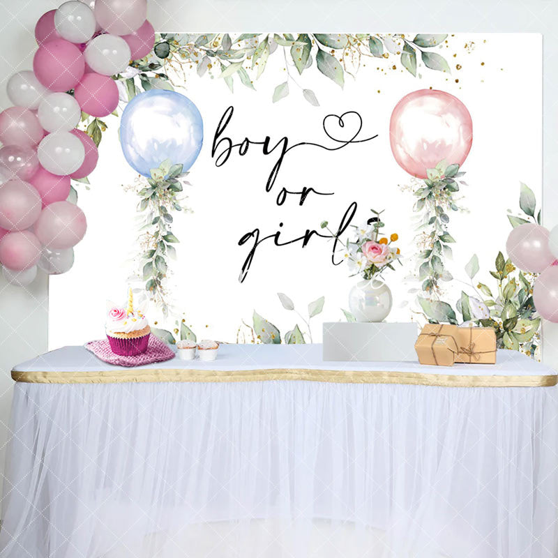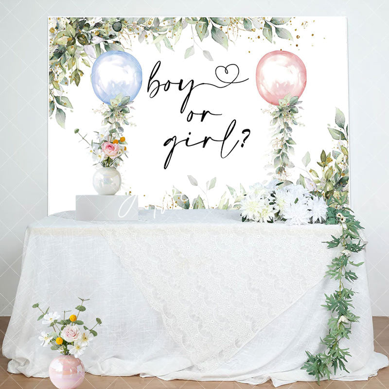 Blue Pink Balloon Greeny Baby Shower Backdrop