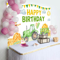 Green Farm Truck Happy Birthday Backdrop for Boy