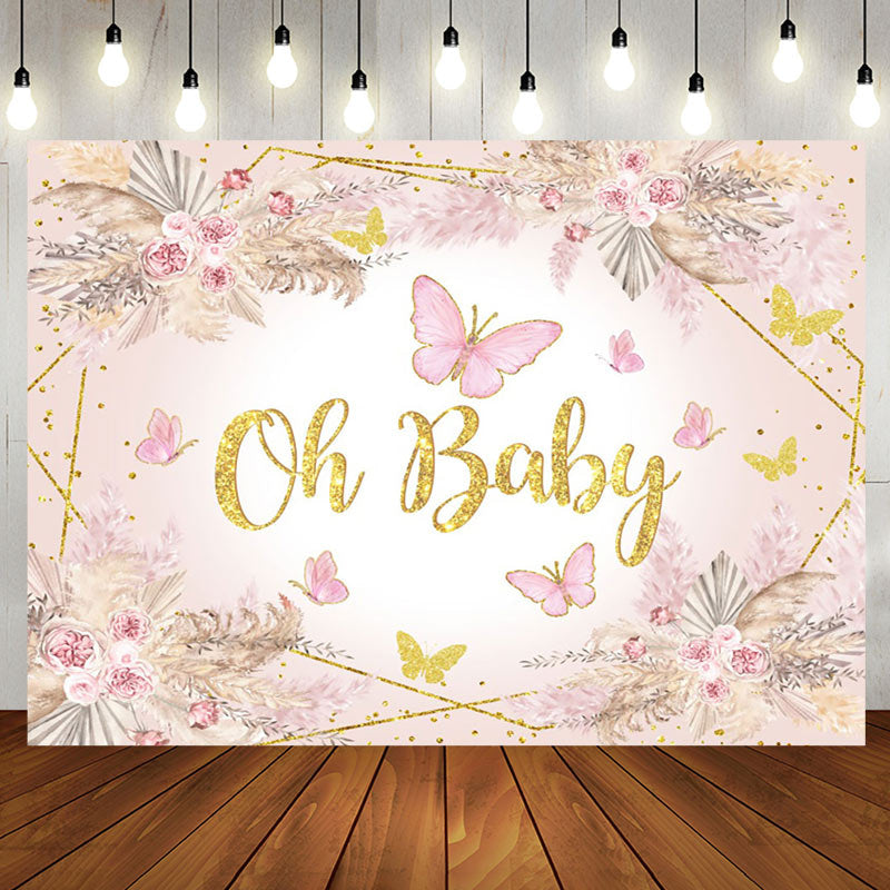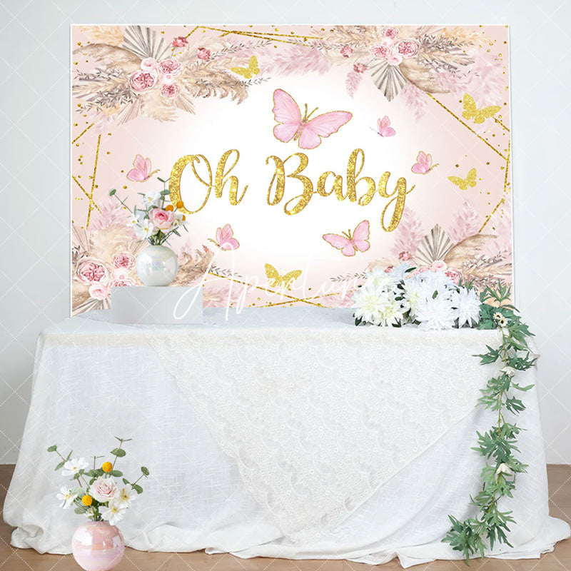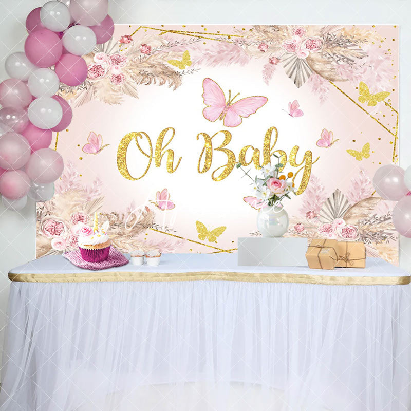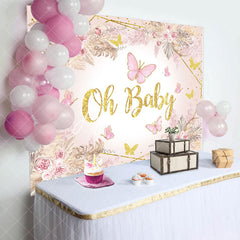 Pink Butterfly Oh Baby Floral Baby Shower Backdrop