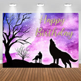 Starry Glitter Night Wolf Theme Happy Birthday Backdrop