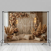 Aperturee Beige Boho Floral Tassel Lighted Photography Backdrop