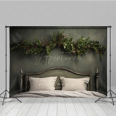 Aperturee Minimalist Christmas Headboard Photography Backdrop, Simple Greenery Garland, Rustic Farmhouse Bedroom Photo Prop