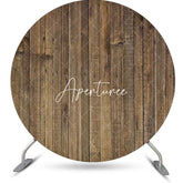 Dark Brown Retro Wood Round Birthday Party Backdrop