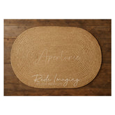Aperturee Tan Oval Wooden Carpet Rubber Floor Mat For Photo