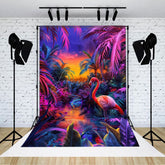 Aperturee Neon Hawaii Sunset Flamingo Summer Vibe Backdrop