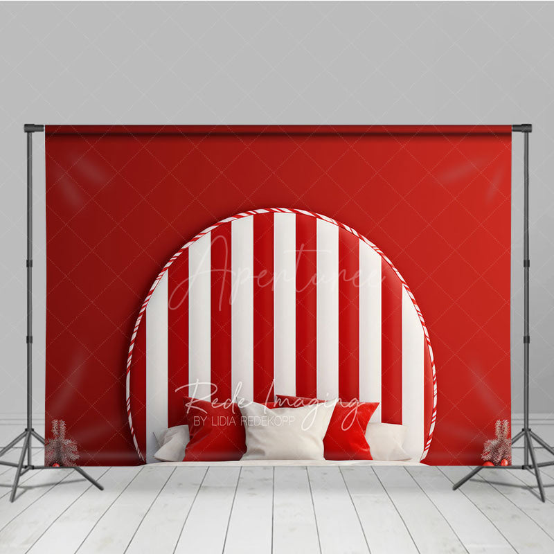 Aperturee Candy Cane Stripe Headboard Photography Backdrop, Red and White Christmas Bed, Holiday Candyland Studio Photo Prop