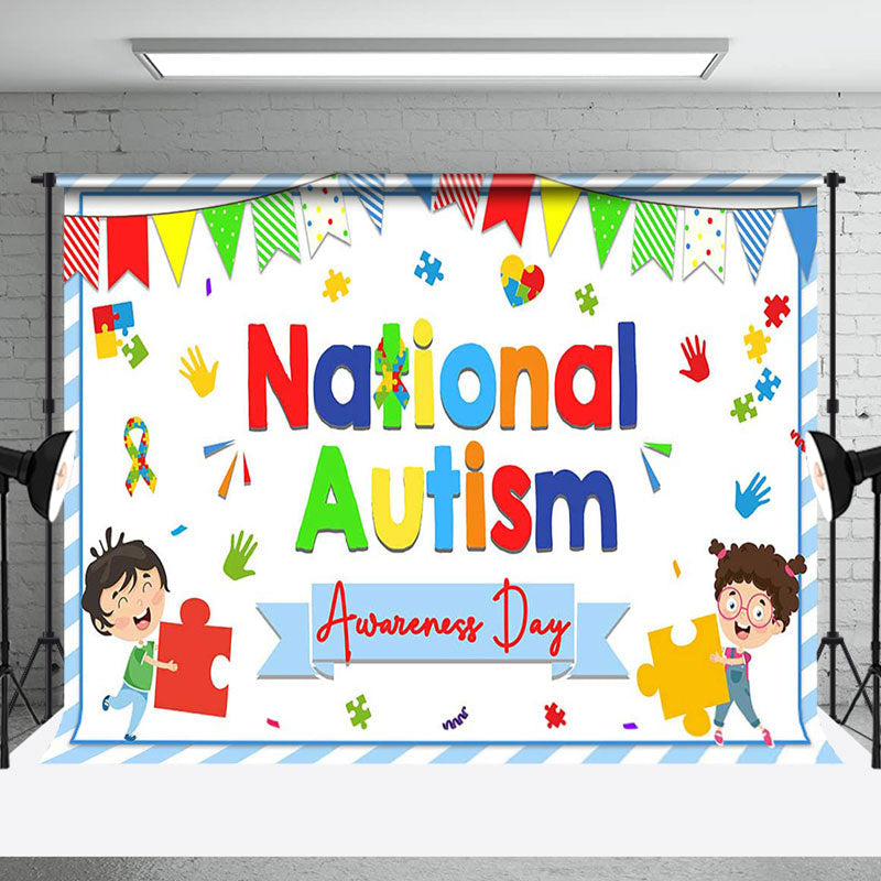 Aperturee Colorful Puzzle National Autism Awareness Backdrop