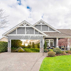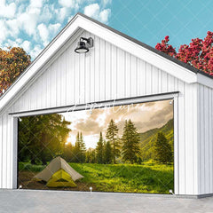 Aperturee Forest Mountain Grass Camping Time Garage Door Banner
