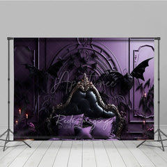 Aperturee Gothic Dragon Bat Photography Backdrop for Halloween, Ornate Purple Bed and Gargoyles, Vampire Lair Photo Prop