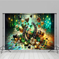 Aperturee Green Bokeh Clover Hearts St Patricks Photo Backdrop