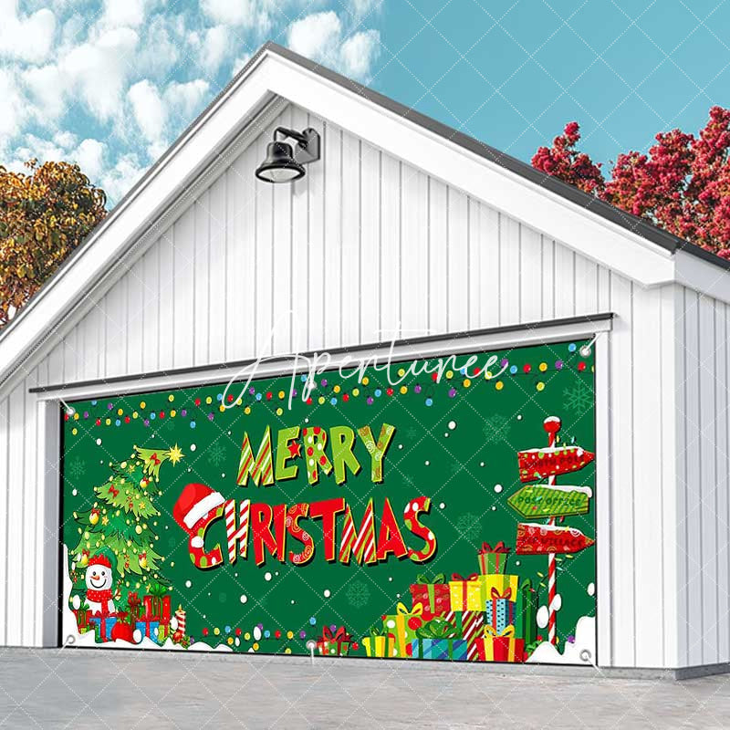 Aperturee Green Trees Gifts Merry Christmas Garage Door Banner