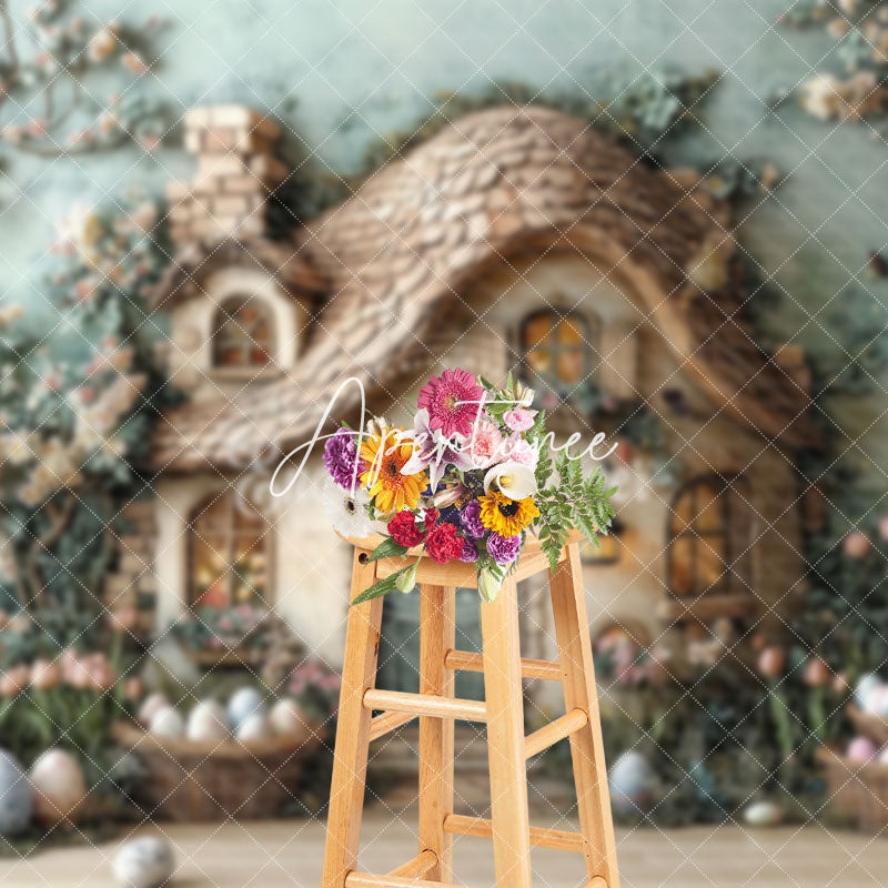 Aperturee Green Wall Rustic Cabin Floral Eggs Easter Backdrop