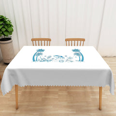 Aperturee Light Gray Tropical Palm Leaf Rectangle Tablecloth, for Modern and Neutral Coastal Dining Decor