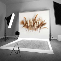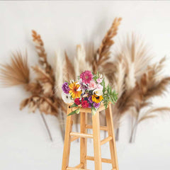 Aperturee Minimalist Boho Photography Backdrop, Dried Palm Leaves and Pampas Grass Arrangement, Modern Neutral Studio Prop