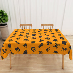 Aperturee Orange and Black Halloween Rectangle Tablecloth with Ghosts and Skulls, for Spooky Party Decor